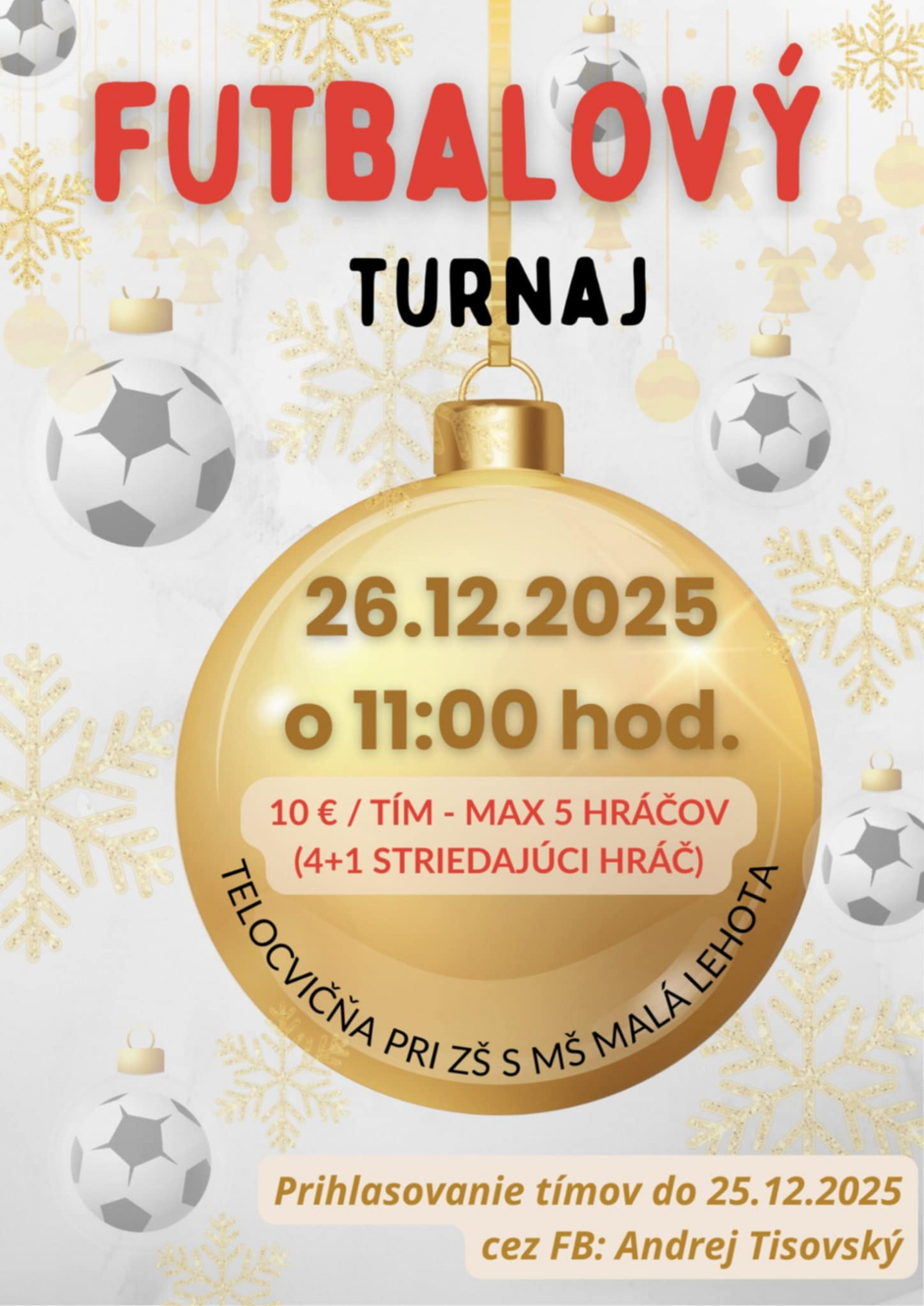 Srdečne Vás pozývame na vianočný futbalový turnaj, ktorý sa uskutoční: